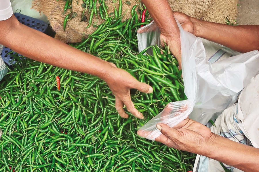 Spice trader Mohsin Ali at Karwan Bazar said Nilphamari, Bogura, Jamalpur, Kushtia and Rangpur usually produce more chillies in the summer, but excessive rainfall damaged the harvest, cutting supply. "That, along with halted imports from India's West Bengal and Bihar where prices also soared, has driven
